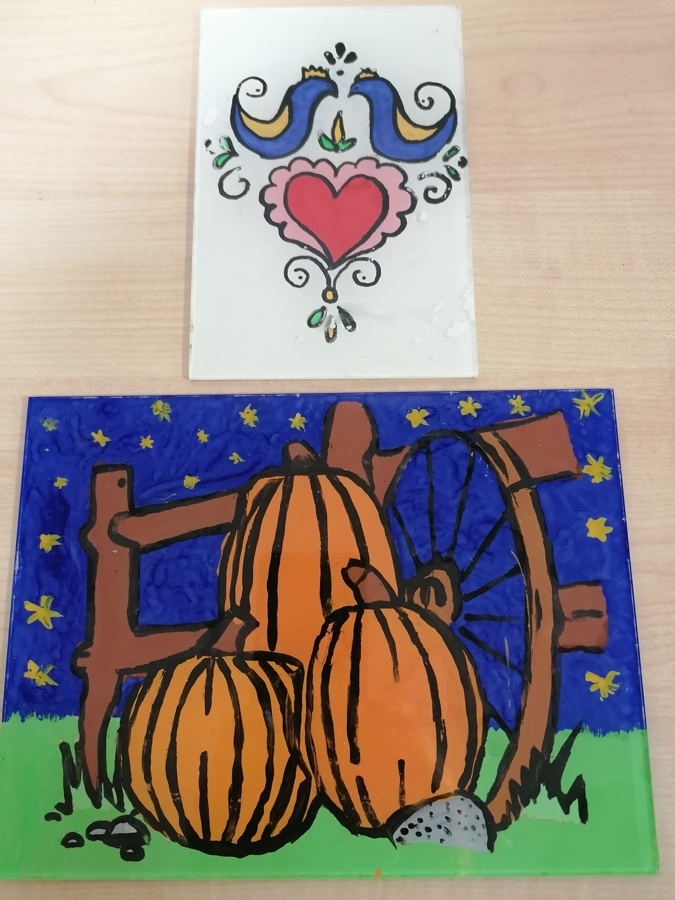 Na kurze si deti osvoja techniku maľby na sklo a namaľujú si reprodukcie, ako aj obrázky podľa vlastného návrhu.