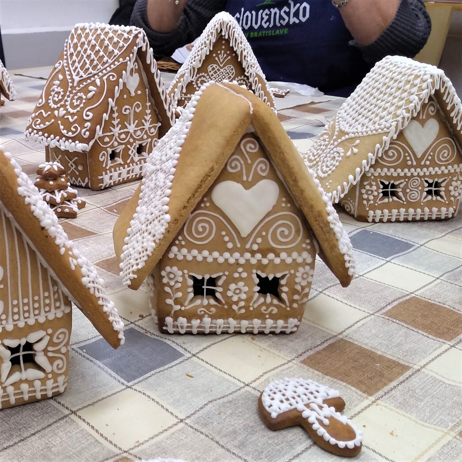 Na kurze sa naučíte zhotoviť si cukrovú polevu správnej konzistencie a tradičnými motívmi si ozdobíte vianočnú medovníkovú chalúpku.