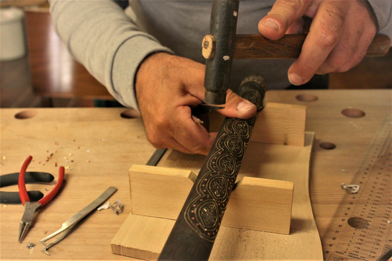 Na kurze sa oboznámite s technologickým postupom výzdoby úžitkových predmetov vybíjaním mosadzným plechom po obvode.