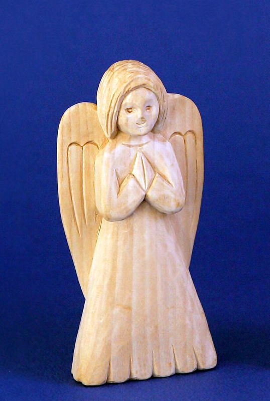 Ručne vyrezávaný anjel menší v prírodnom prevedení, bez povrchovej úpravy.