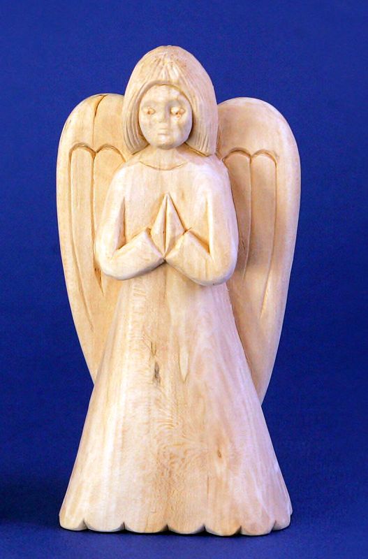 Ručne vyrezávaný anjel väčší v prírodnom prevedení, bez povrchovej úpravy.