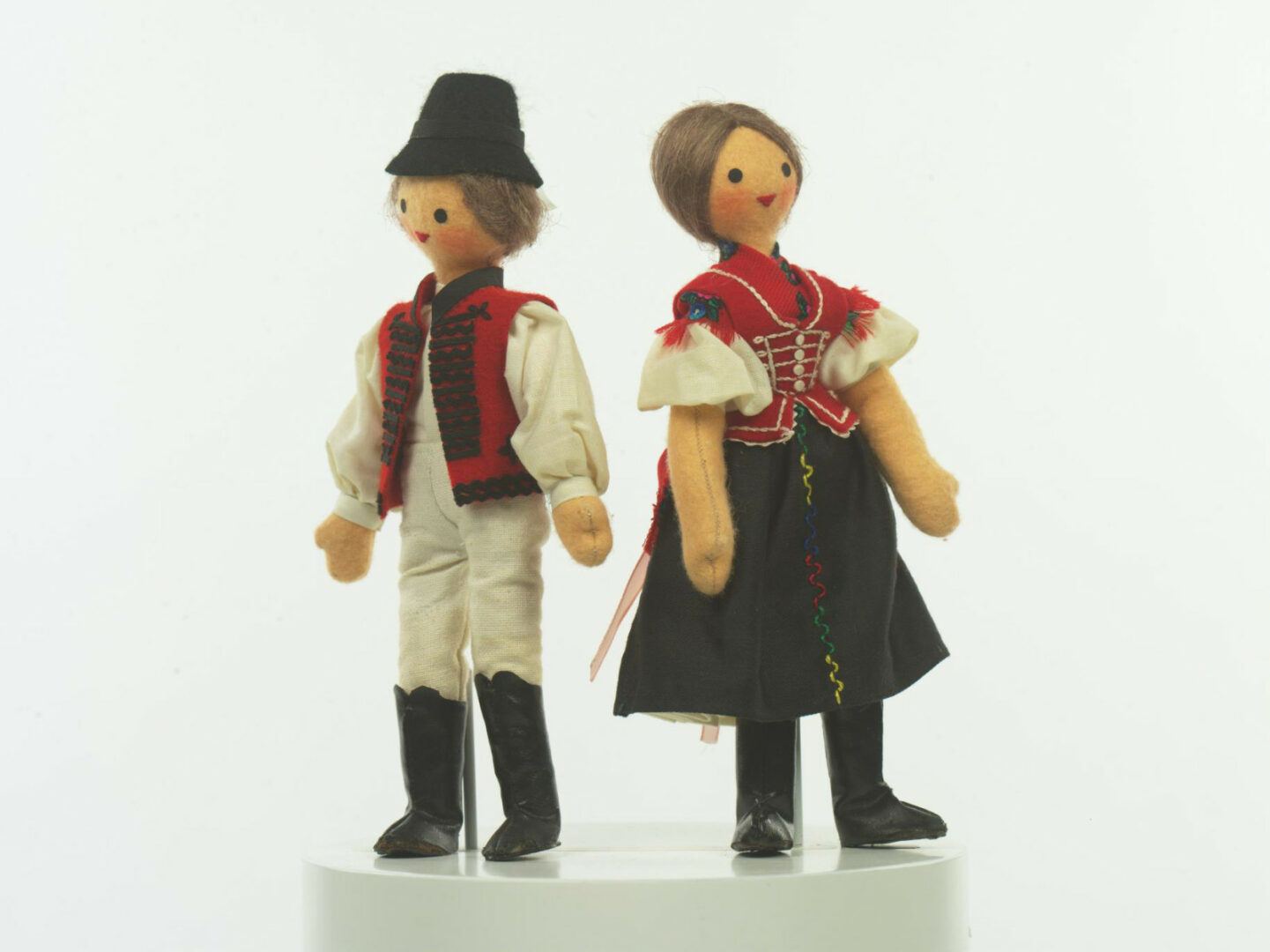 Pár krojovaných bábik, ktoré štylistickým spôsobom zobrazujú sviatočný kroj z Čiernej nad Topľou. Na odeve sú zachované typické odevné súčiastky z tejto oblasti.