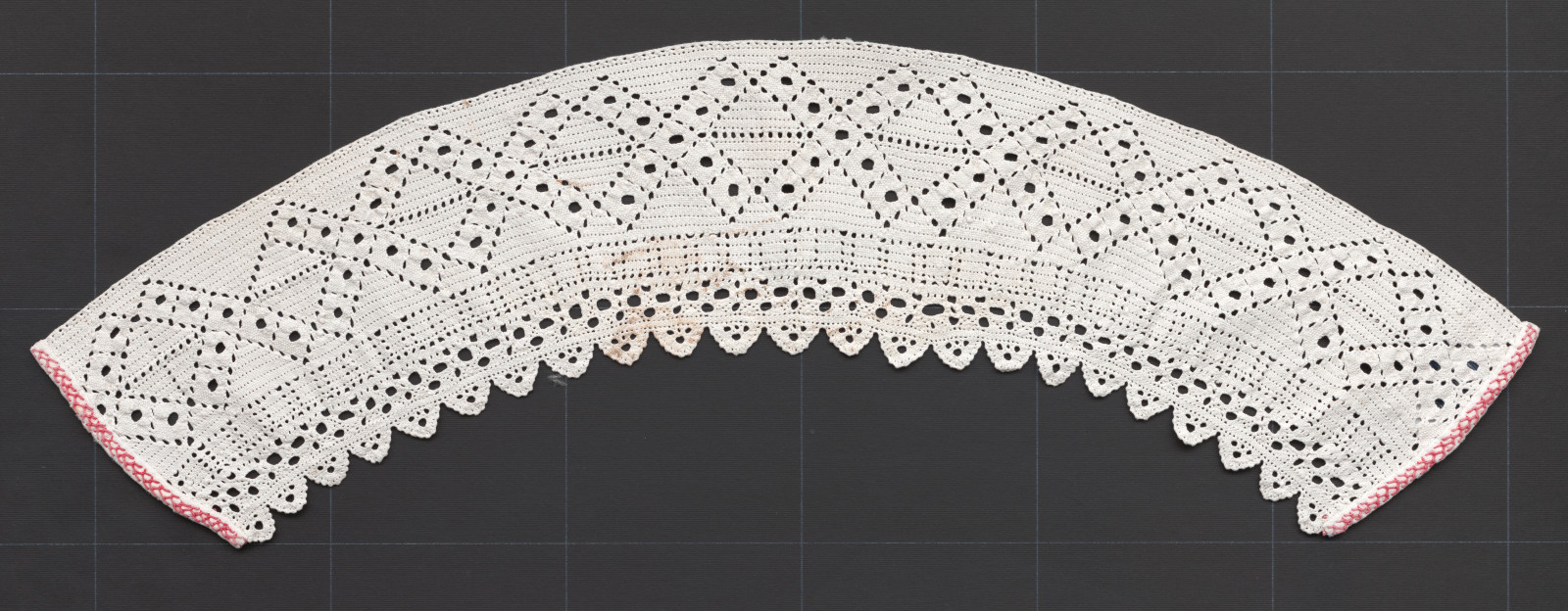 Čelenka je upaličkovaná z hrubšej bavlnenej priadze, konce sú olemované bielou bavlnenou látkou, cez ktorú sú vyšité ozdobné stehy červenou bavlnenou priadzou. Čipka je tvarovaná do oblúka už pri paličkovaní.
