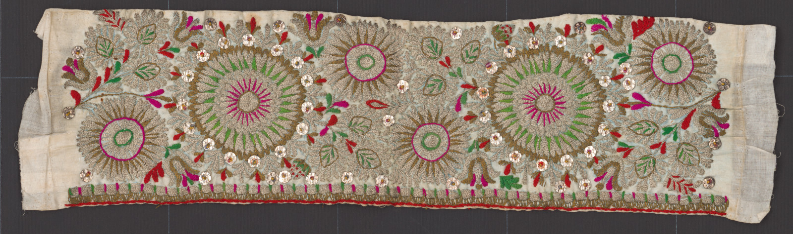 Čelenka je vyšitá cez dve vrstvy vaperu. Predkreslená výšivka je šitá kovovými niťami a hodvábnou priadzou. Použitý je plný plochý a stonkový steh. Výšivka je doplnená našitými flitrami, ktoré majú tvar kvetov, a korálkami.