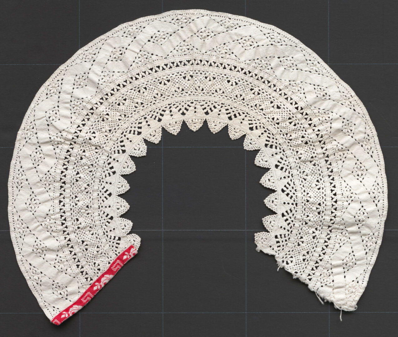 Čelenka z čepca je hustá mnohopárová čipka ručne paličkovaná z hrubšej bavlnenej priadze. Jeden koniec je zapracovaný červeno-bielou továrenskou tkanicou. Čelenky z rovného pásu čipky sa na Liptove robili v 19.storočí, paličkovanie do oblúka bolo záležitosťou 20.storočia, hlavne prvej polovice.