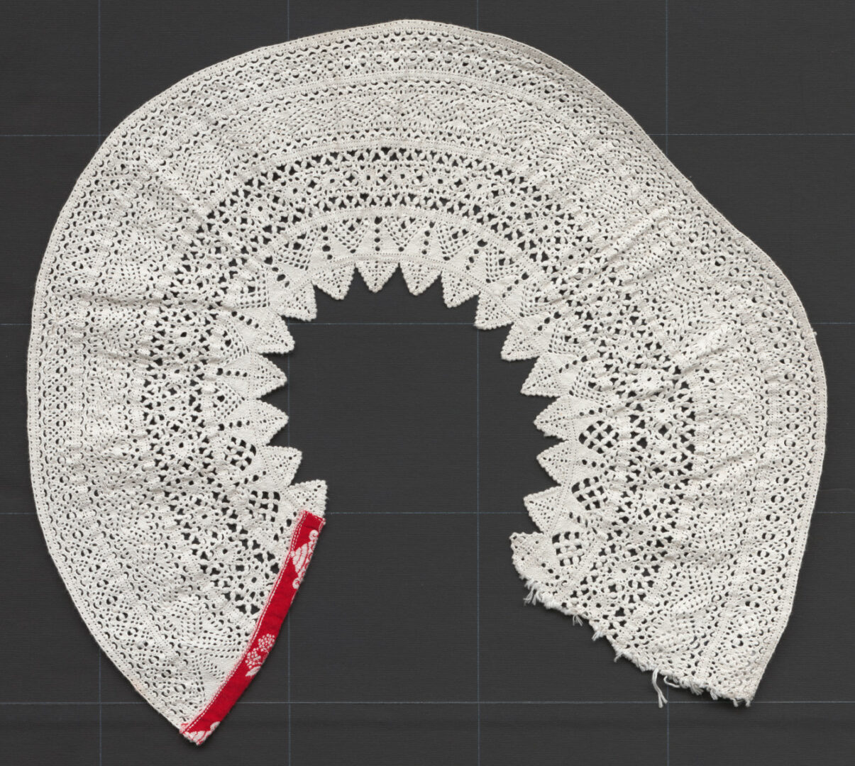 Čelenka je z mnohopárovej paličkovanej čipky . Už pri paličkovaní bola tvarovaná do oblúka. Jeden koniec je olemovaný továrenskou tkanicou.