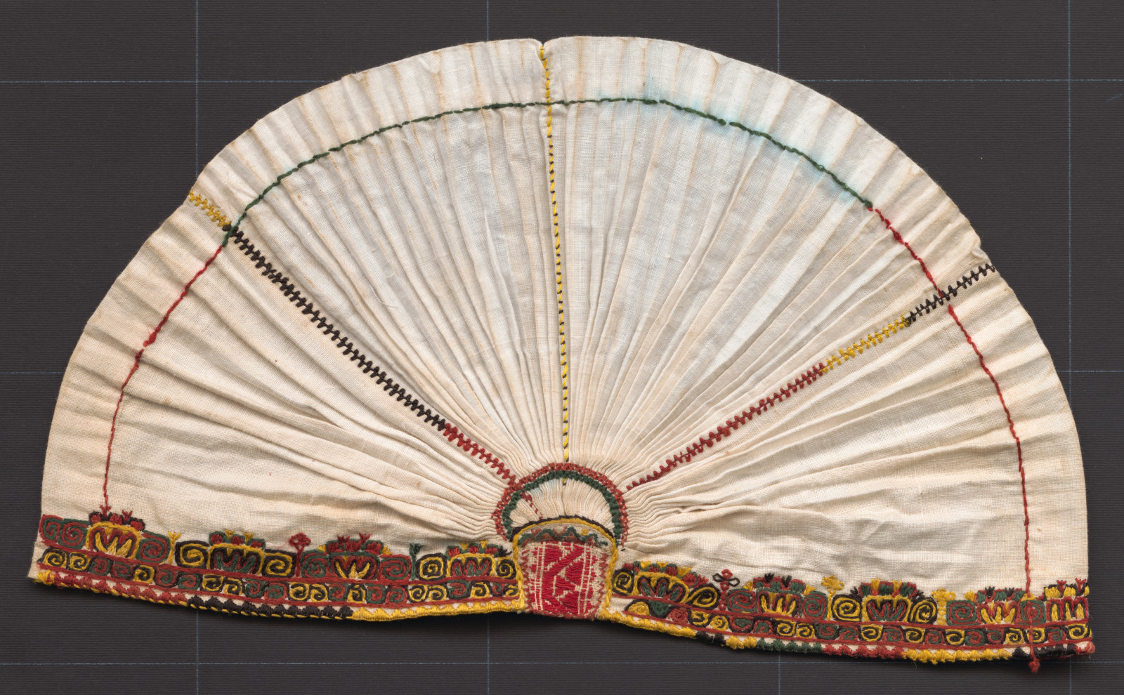 Čepiec je z 3 obdĺžnikov továrenského plátna, ktoré sú zošité spojovacím švíkom. Cez obdĺžnik v strede je vyšitá linka, ktorá ho delí na dve časti. Vyšívacou priadzou je nezosúkaná hodvábna priadza. Horná časť čepca je nariasená a zošitá s obdĺžnikom červeno-bielej továrenskej tkanice. Výšivka na prednej časti čepca je šitá retiazkovým stehom. Predný okraj je obslučkovaný. Na dolnej časti je ušitý prehyb.