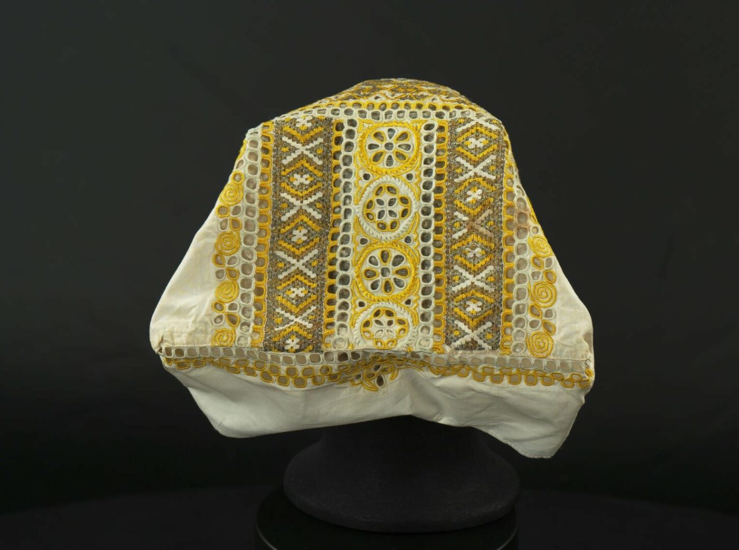 Čepiec z továrenského plátna je vyšitý, výšivka je šitá hodvábnou priadzou. Použité sú dierky, plný plochý a slučkovací steh. Časti čepca sú spojené paličkovanou čipkou, čipka so zubami tvorí čelenku čepca. Čipka je zhotovená z bavlnenej priadze a kovových nití.