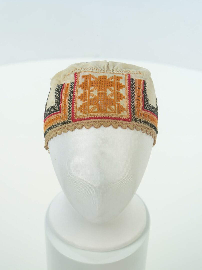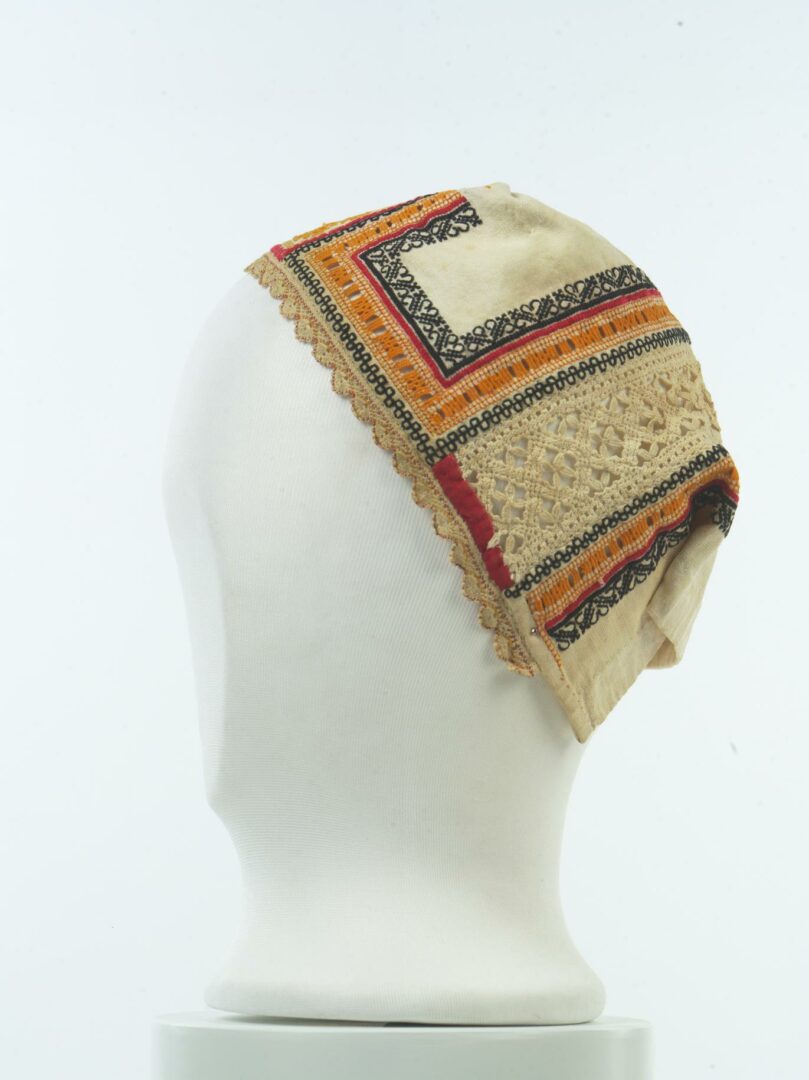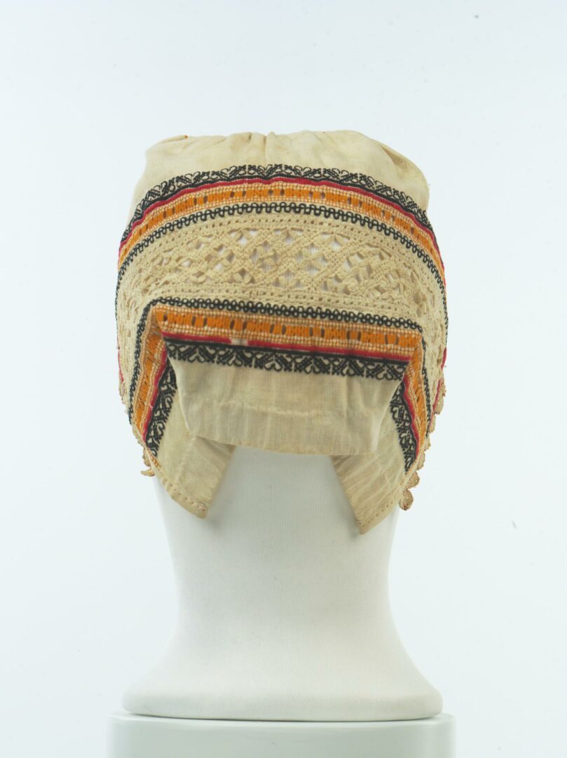 Čepiec je zošitý z troch častí továrenského plátna. Dve sú spojené pomocou paličkovanej čipky. Výšivka je vyrobená podľa počítania nití. Použitá je hrachovinka, krížik, mešterka, výrez a zadný steh. Prednú časť čepca lemuje úzka paličkovaná čipka.