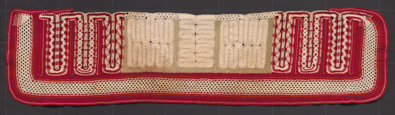Čelenka je upaličkovaná z bavlnenej priadze. Paličkovaná čipka je robená pásikovým spôsobom s použitím plátenka a dierok.