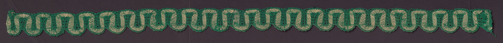Pásiková čipky, typ seredský, vyrobené zo zelenej a bielej vlny. Tzv. „panenková“ čipka. Nosila sa na zásterách, rukávcoch a mužských košeliach.