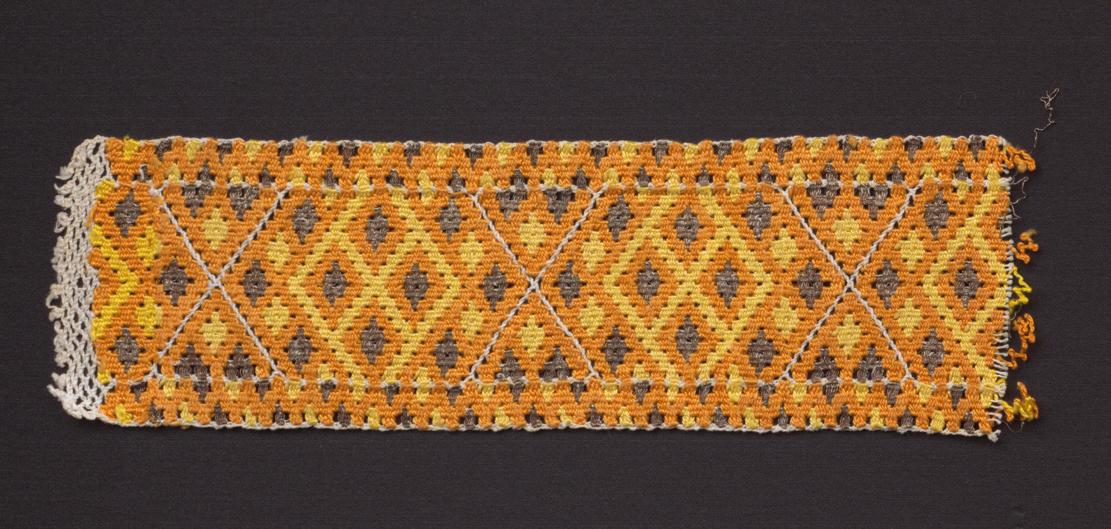I. Mnohopárová paličkovaná vložka, typ piešťansky. Vzor tvoria ploštičky v kosoštvorcovej sieti. Prvky sú geometrické, založené na striedaní farieb. Všetky vložky sú piesťanského typu. Vzor je upletený z ploštičiek kombináciu bavlneneých s trieborných kovových nití. Jedna čipka má aj vzor upletený plátenkovou väzbou zo strieborných kovových nití.