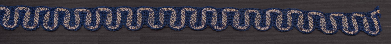 Pásiková paličkovaná čipka, typ seredský. Čipka je vyrobená z modrej a bielej vlnenej priadze. Patrí medzi najjednoduchšie čipky, tzv. „húsvaška“.