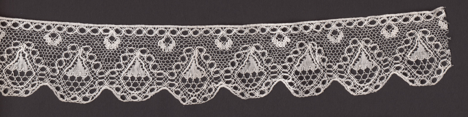 Mnohopárová čipka, typ krajnianský. Základom je riečička pletená tylovou väzbou, do ktorej sú plátenkovou väzbou vplietené motívy. Vzory sú zdôraznené hrubšou niťou. Čipka je ukončená zúbkami s veľkými okami.