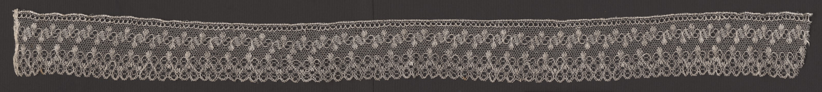 Mnohopárová čipka, typ krajniansky, zhotovená z tenkých nití. Základ tvorí tylová riečička, väzby plátenko, oká, vlietaním hrubšej nite. Čipka je ukončená drobnými zúbkami.