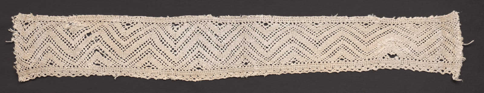 Mnohopárová paličkovaná vložka, typ hontiansky. Vzor tvoria lomené vlnovky, tzv. rebrá. Väzby plátenko, pletenec, na vonkajšom okraji drobné zúbky.