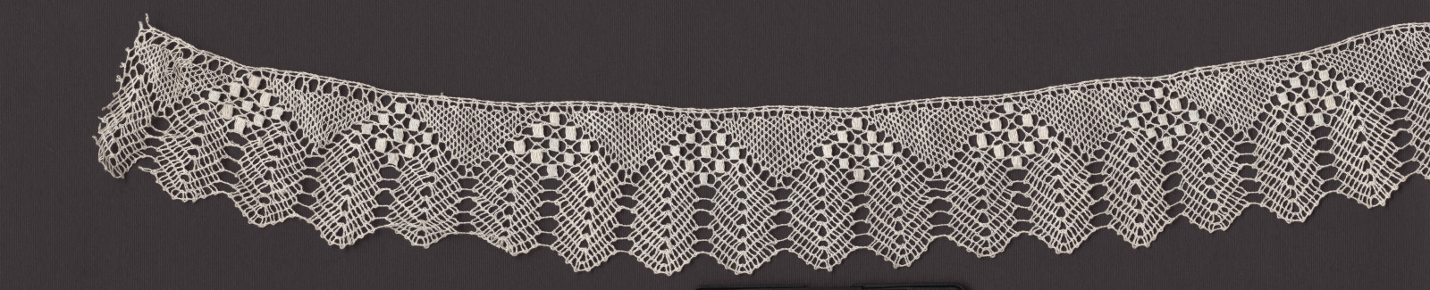 Mnohopárová čipka, typ starohorský. Vyrobená je z bielych nití na šitie, väzby polpára, ploštičky, jednoduchý zúbok.