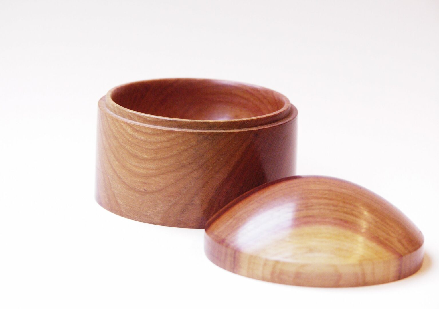 Dóza s vrchnákom je točená na sústruhu a je vyrobená z rôznych drevín. Je v prírodom prevedení a povrch je ošetrený šelakom.