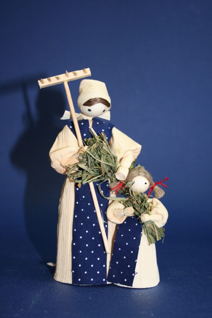 veľká s hrabľami a malá so senom, vyrobená z kukuričného šúpolia