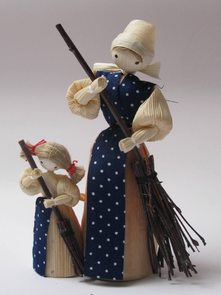 veľká a malá s metlou, vyrobená z prírodného kukuričného šúpolia