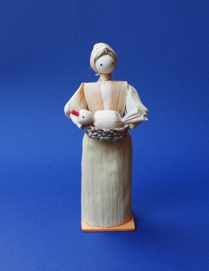 s húskou v košíku, vyrobená z prírodného kukuričného šúpolia