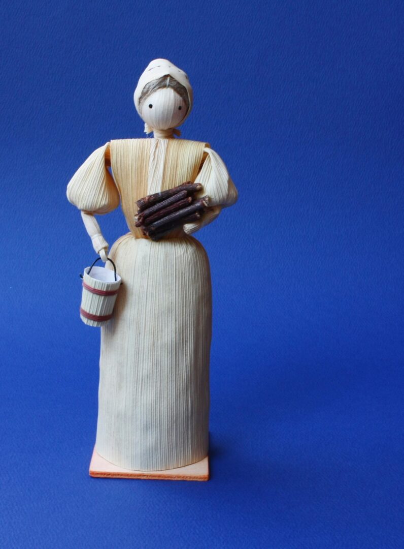s vedierkom a drevom, vyrobená z prírodného kukuričného šúpolia