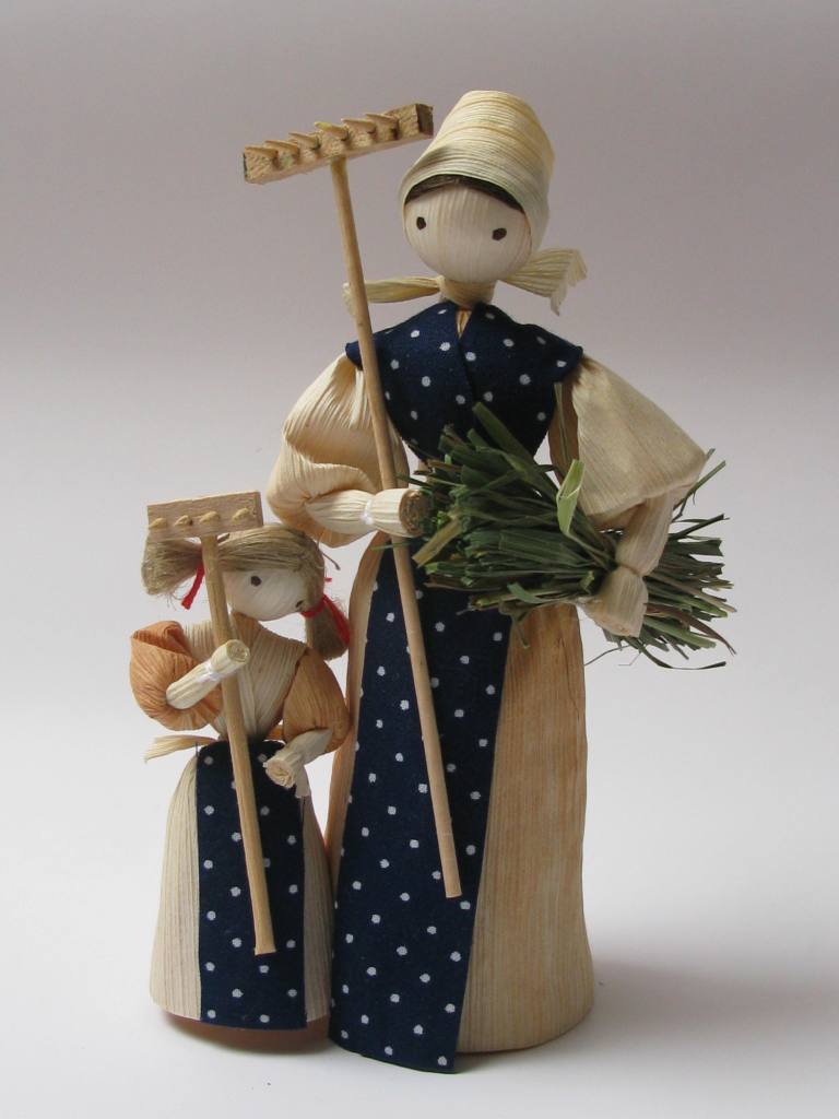 veľká s hrabľami a senom, malá s hrabľami, vyrobená z prírodného kukuričného šúpolia