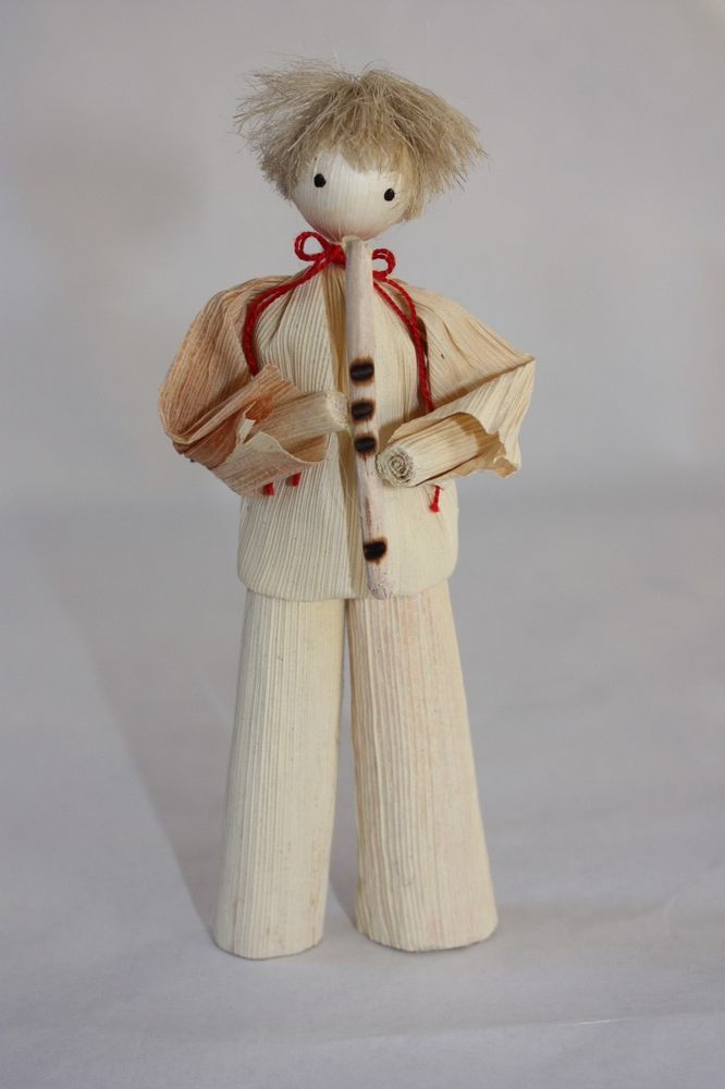 chlapec s píšťalkou, vyrobená z prírodného kukuričného šúpolia