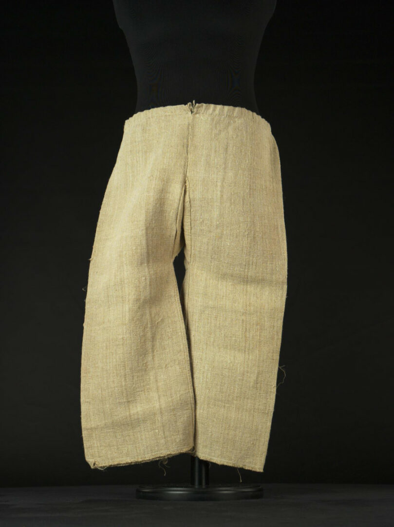 Gate sú ušité z domáceho plátna. Dolný okraj je ukončený ušitou mešterkou a krátkymi strapcami. V páse je ušitý prehyb na navlečenie šnúrky. Ušité sú ručne.