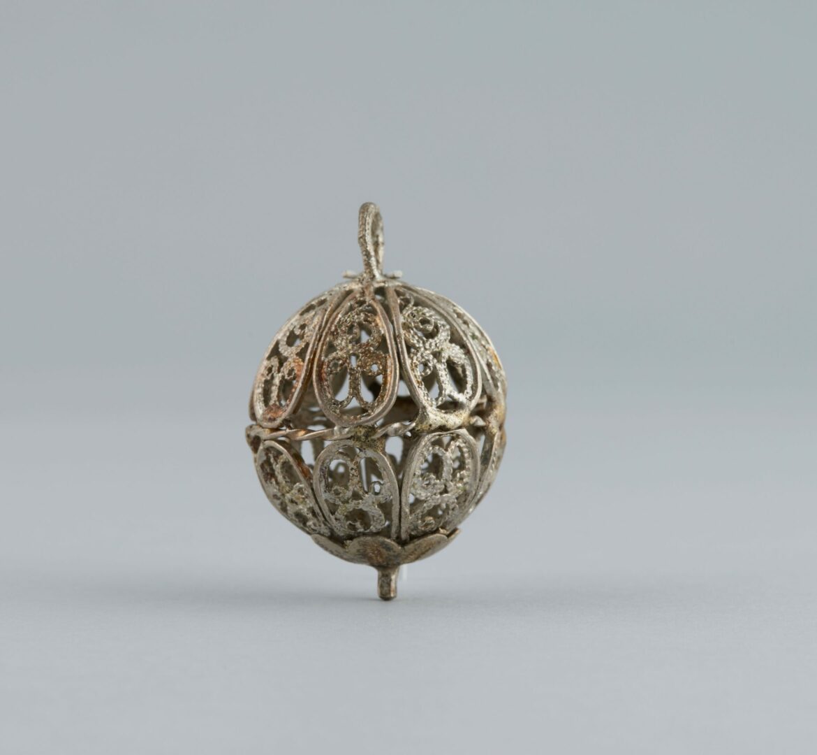 Gombík guľatého tvaru je zhotovený z hladkého drôtu a drôteného pletenca. Na jednom konci je priletovaná plechová hviezdica, na druhom uško.