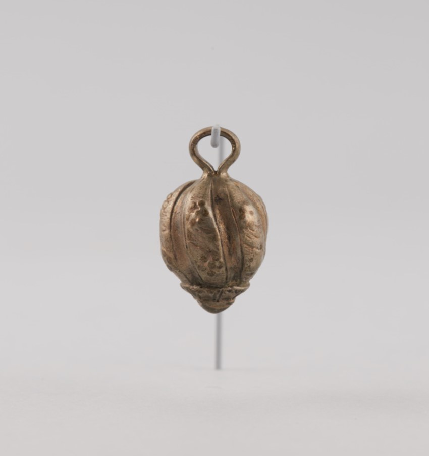 Gombík elipsového tvaru má na jednom konci priletovaný klobúčik, na druhom uško.