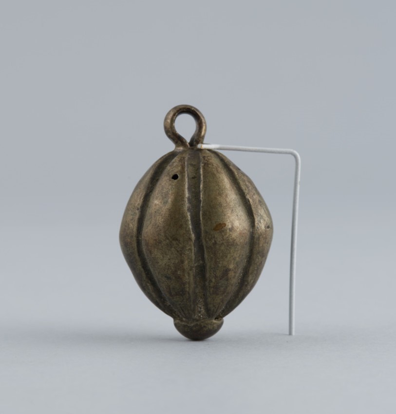 Gombík je zhotovený zo strieborného plechu tepaním. Na jednom konci má klobúčik z plechu, na druhom uško.