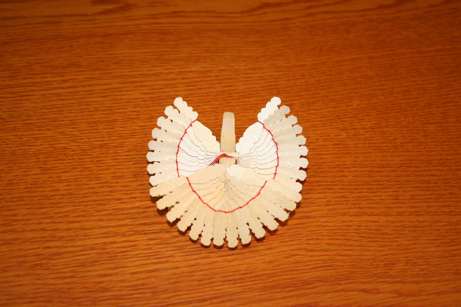 Holubica v prírodnom prevedení je ručne vyhotovená štiepanou technikou z mokrého dreva. Postupne sa režú jemné plátky, pričom sa rešpektuje rast dreva.