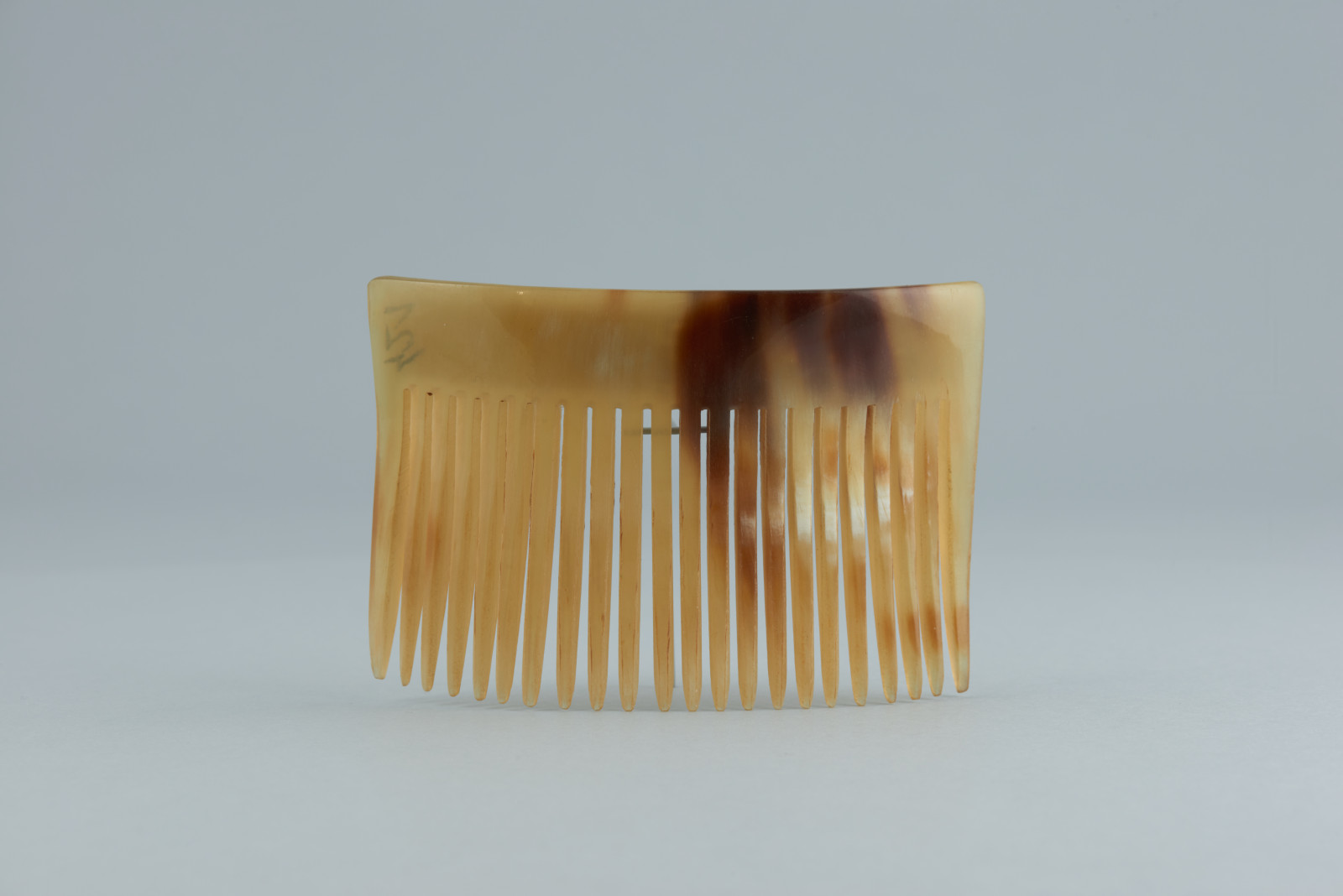 Hrebeň z rohoviny na zastoknutie do vlasov (na pridržanie účesu, ktorého bol súčasťou) je zhotovený zo širšej časti kravského rohu, mierne prehnutý, obdĺžnikový tvar. Hrebeň sa nosil ako súčiastka účesu ku kroju na východnom Slovensku.