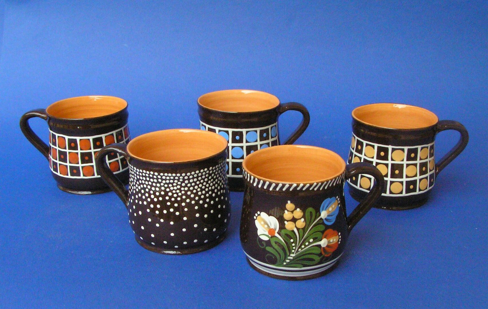 Regionálny názov – mašinár.Ručne točený na hrnčiarskom kruhu, poliaty tmavohnedou až čiernou (bielou) hlinkou, farebnými hlinkami maľovaný geometrický (rastlinný) dekor – rôzne variácie, transparentná bezfarebná glazúra.