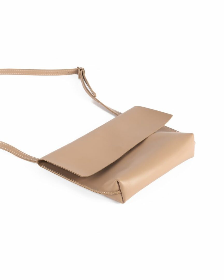 Kabelka kožená väčšia šitá na stroji v svetlohnedej farbe.