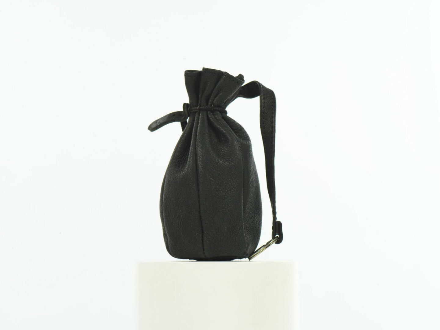 Klúčenka – mešec z kozinky farbenej, bez výzdoby, sťahovacia šnúrka po obvode hrdla mešca v hnede farbe.
