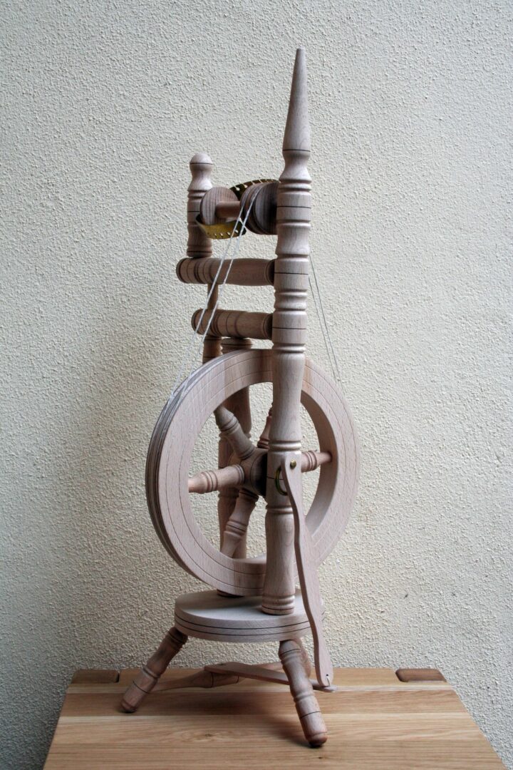 Kolovrátok je na hladko opracovaný, funkčný a riešený na výšku. Je vyrobený z rôznych druhov drevín a povrchovo upravený včelím voskom.