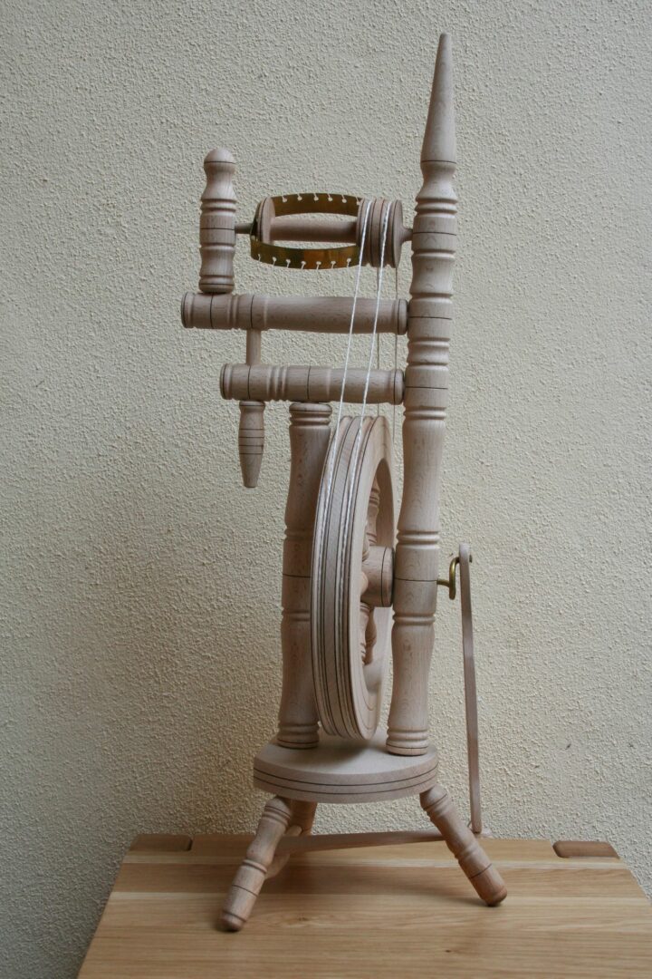 Kolovrátok je na hladko pracovaný, funkčný a riešený na výšku. Je vyrobený z rôznych drevín a povrchovo upravený včelím voskom.