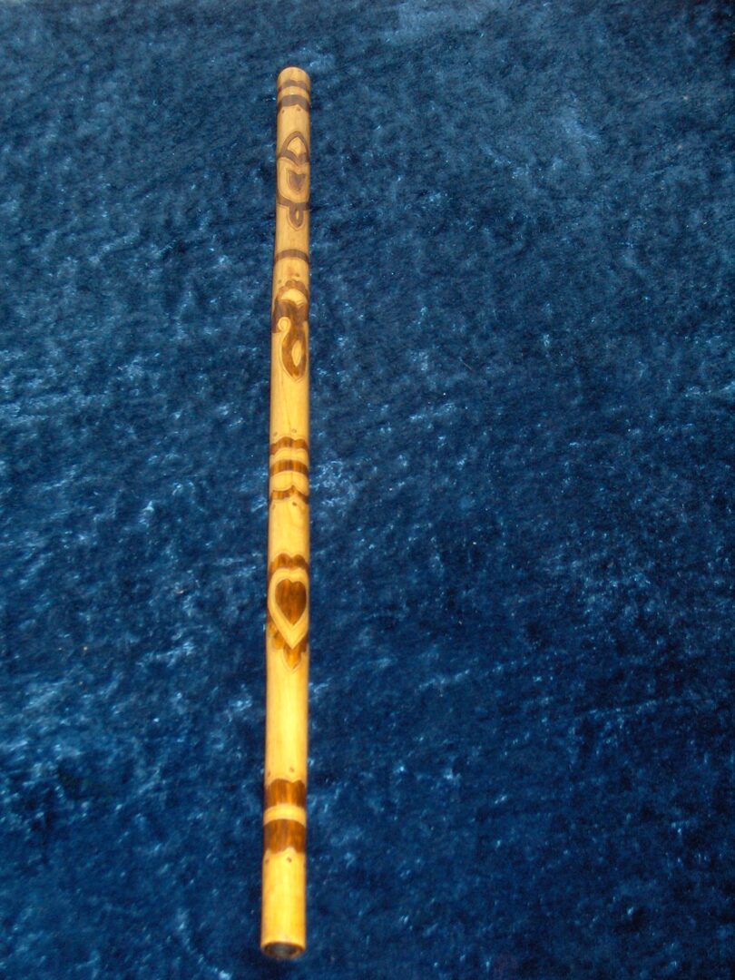 Koncovka je zdobená vyrezávaním a vzory sú morené alebo leptané kyselinou dusičnou. Povrch je ošetrený šelakom.