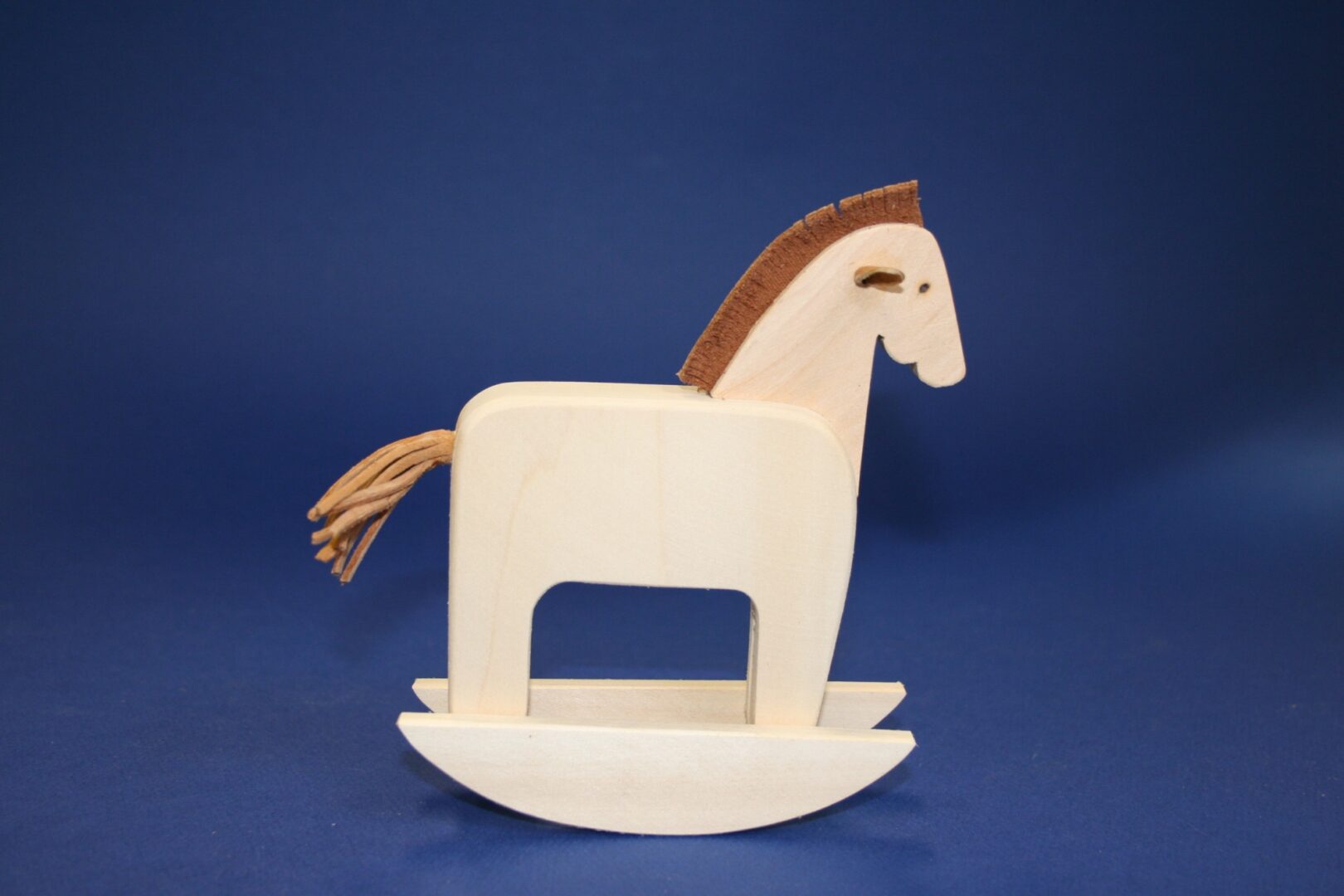 Koník drevený hojdací je vyhotovený na sústruhu, do hladka vybrúsený a hrivu, ušká a chvost má z kože.