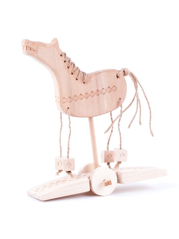 Koník drevený – vyrezávaný, prírodný, na podvozku