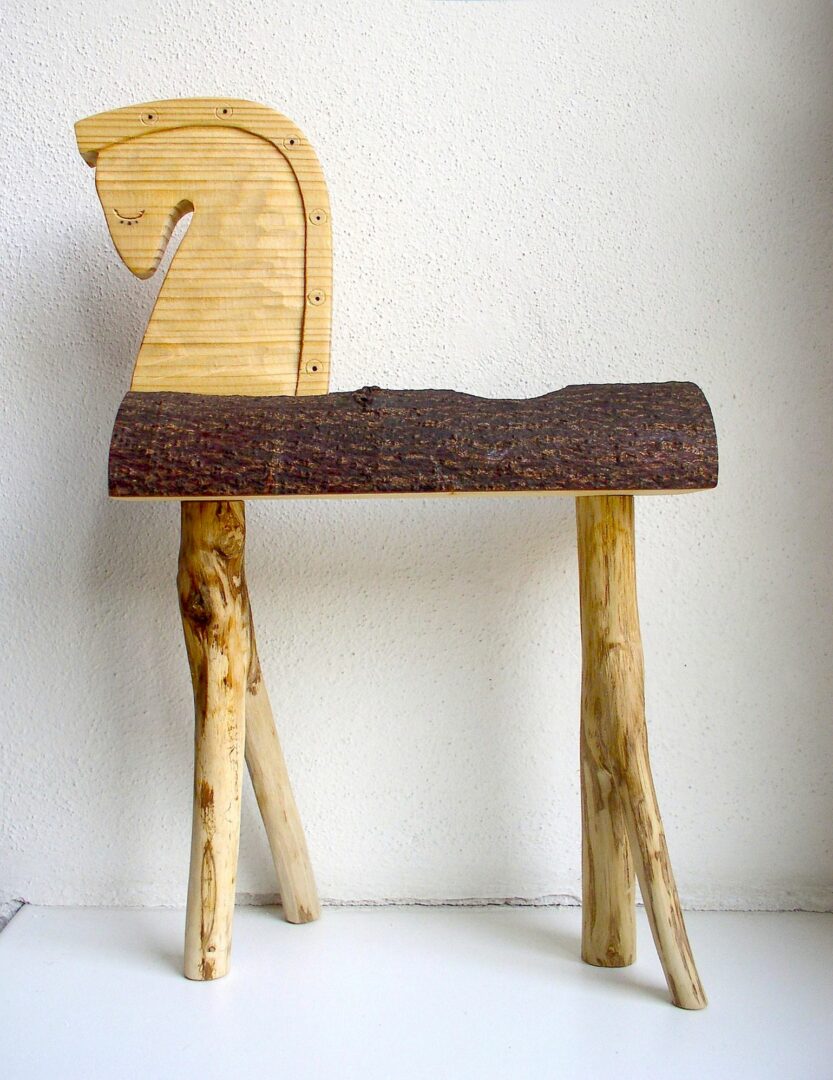Koník prírodný väčší je ručne vyrezávaný, zdobený ponechaním kôry a bez povrchovej úpravy.