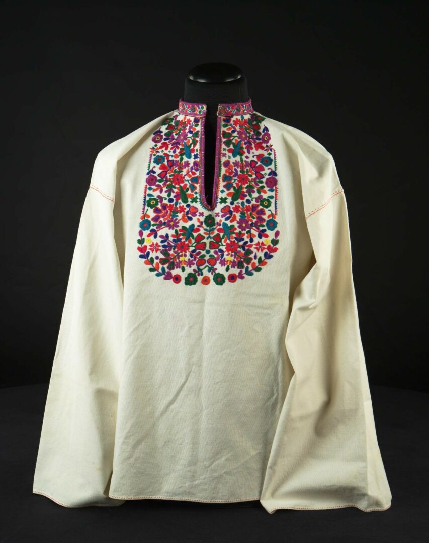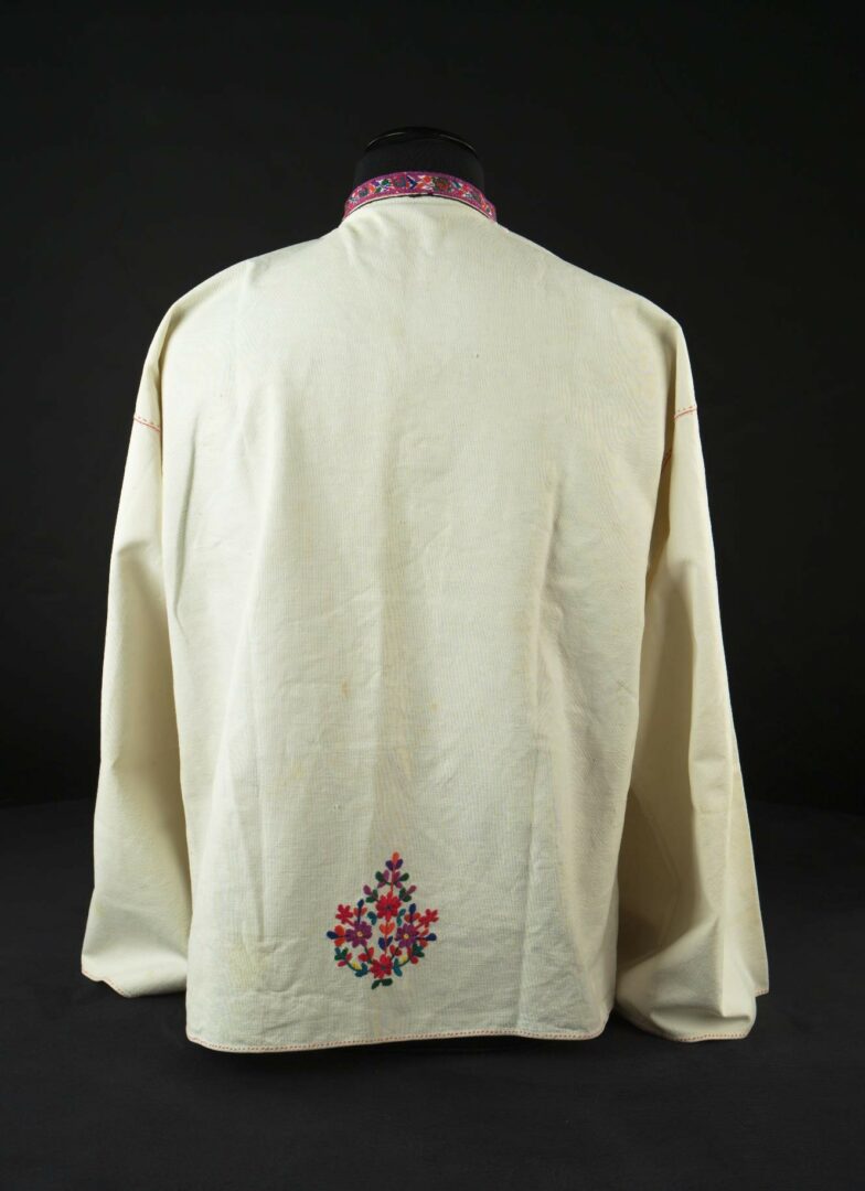 Ušitá je z domáceho pamokového plátna. Golierik je vyšitý podľa počítania nití, okolo rázporka a nad dolným okrajom zadnej časti je predkreslená výšivka. Predkreslená výšivka je vyrobená plným plochým stehom, slučkovacím a retiazkou, ornament je rastlinný. Na golieriku sú tiež rastlinné motívy vyšité krížikmi. Rázporok je obslučkovaný a olemovaný stonkovým stehom a hladkovaním.