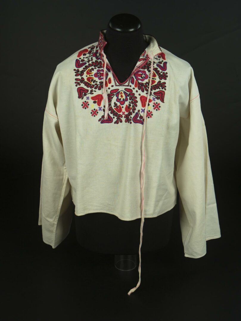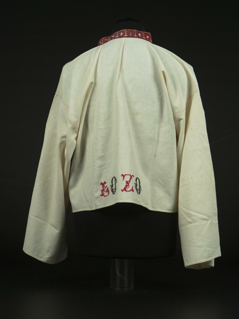 Ušitá je z domáceho pamokového plátna. Na golieriku je vyšitá podľa počítania nití, okolo rázporka na prednej časti je predkreslená výšivka, na dolnom okraji zadnej časti je vyšité pravdepodobne meno majiteľa, JOZO. Predkreslená výšivka je doplnená niekoľkými geometrickými motívmi, ktoré sú vyšité hladkovaním, meno je vyšité krížikmi. Predkreslenú výšivku tvorí kompozícia z rastlinných motívov.