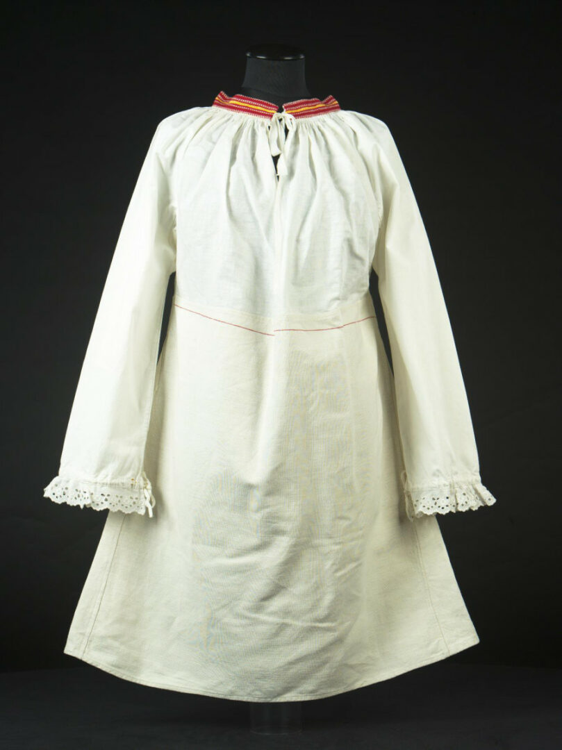 Horná časť košele je ušitá z továrenského bavlneného plátna, dolná časť stanu je z domáceho pravdepodobne ľanového. Golierik je z ripsovej tkaniny. Na koncoch rukávov je našitá biela strojová výšivka široká 4 cm. Košeľa bola kúpená od Miroslava Garaja z Bratislavy. Pôvodný majiteľ bola rodina Patakyová z Bijacoviec.