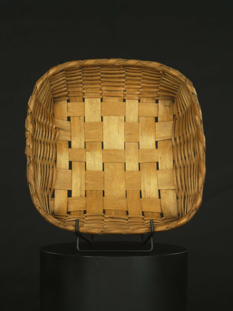 Košík na pečivo je upletený z lubov liesky a dubu, plátnovou väzbou. Spodná časť a vertikálne luby sú z duba, vodorovný výplet je z liesky.