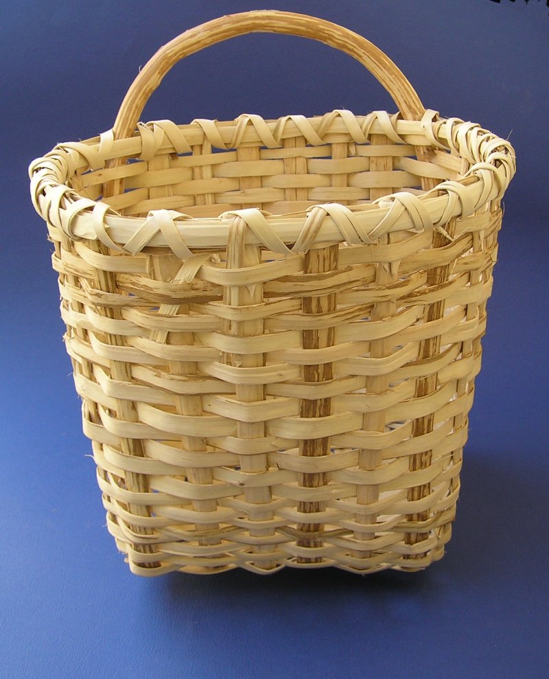 Košík s rúčkou je vyrobený technikou párania dreva (liesky) a pletenia z lubov.