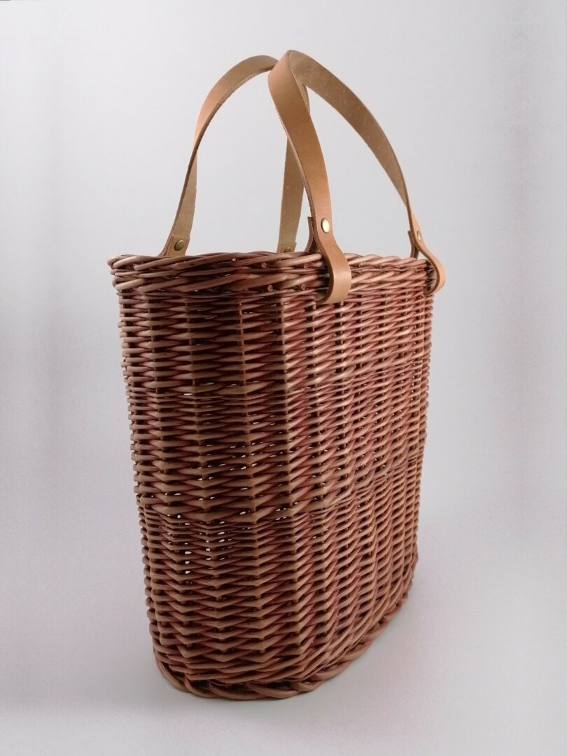 Košík prútený s koženými rúčkami kónický – červený
