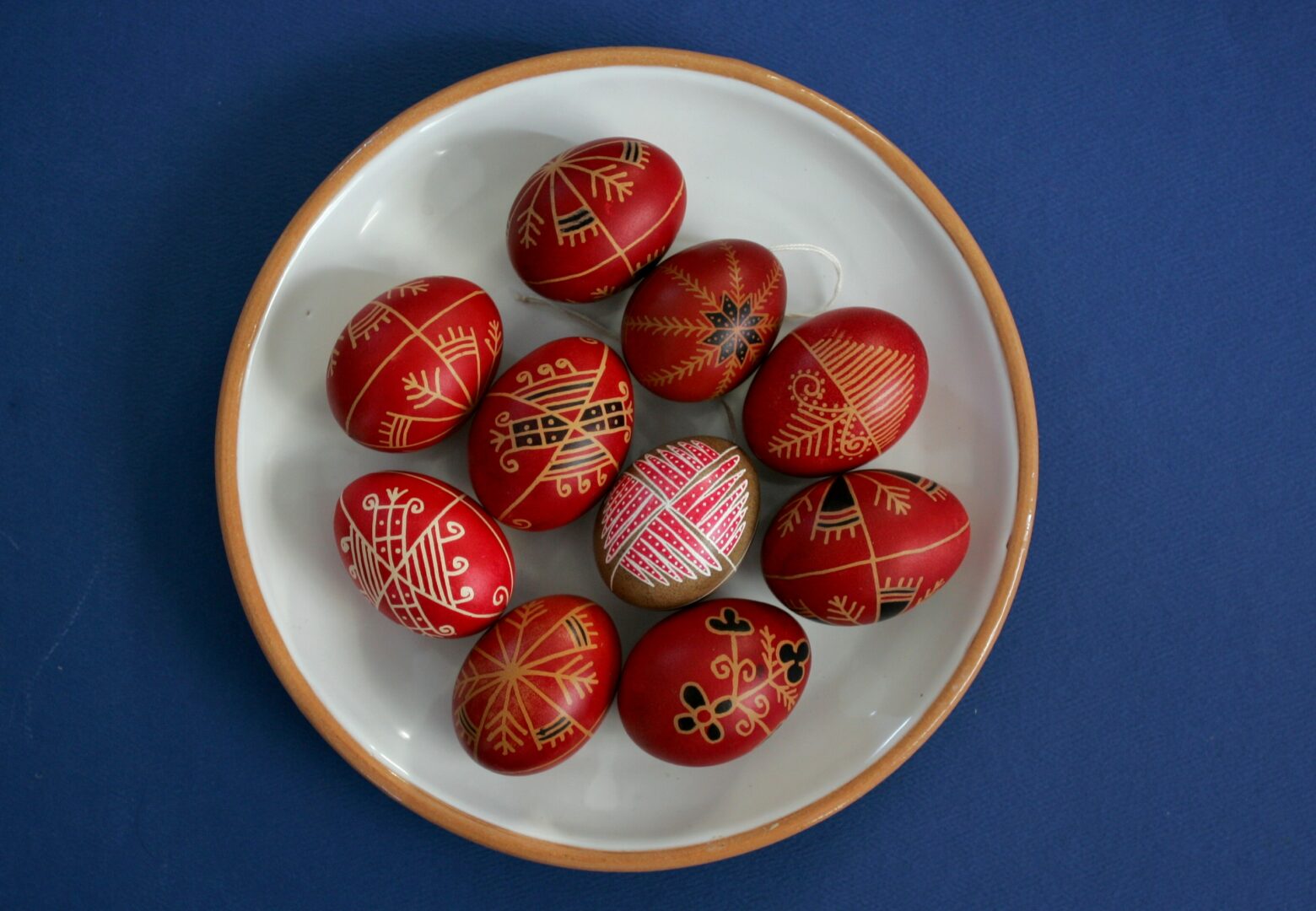 zdobená teplým voskom, trubičkovou technikou, stieraná